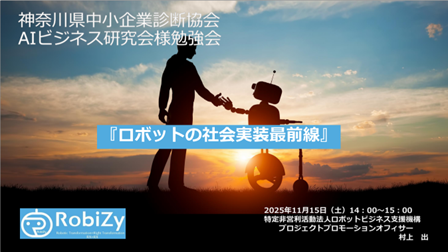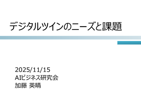 2025年11月15日に開催されたAIビジネス研究会定例会では、外部専門家によるロボット技術の社会実装に関する講演、研究会メンバーによるデジタルツインに関する知見の共有、日本のAI戦略に関する報告、および中小企業のDX/AI計画策定ワークショップが実施されました。