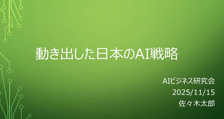 AIは経済社会の発展の基盤技術であり、その研究開発と活用を促進するため、「人工知能関連技術の研究開発及び活用の推進に関する法律(AI法)」が2025年9月1日に施行されたことが報告されました。イノベーション促進とリスク対応を両立させて、最もAIを開発・活用しやすい国となるような法制度です。